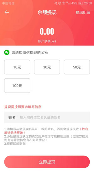 安卓版下载 大小:8.00 MB 下载:3256次 猫猫赚 支 持:安卓 分 类:手机游戏 大 小:8.00 MB 版 本:1.0.1 评 分: 开发者:杭州九吨科技有限公司 下载量:3256次 发 布:2020-03-14 10:05 手机扫码免费下载 #猫猫赚截图 #猫猫赚简介 猫猫赚是懒猫试玩旗下的安卓版试玩答题赚钱平台,躺着赚钱的APP,1元可提现。一款以答题形式为主的试玩APP,用户通过完成指定任务,从而获得丰厚的现金奖励,赚取的收益可通过微信方式进行提现。 怎么赚钱:填写邀请码TGNWEW领红包 1、APP首页点“喵抓一下”,每次点击试玩不同的任务; 2、完成新手任务,做任务,赚大钱,签到任务,连续签到更多奖励。